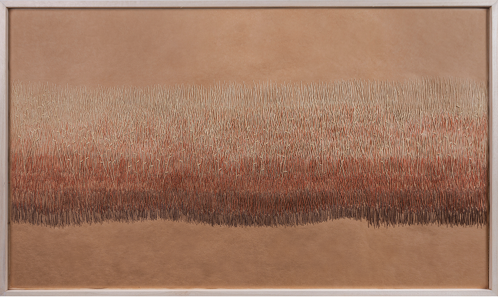 Todo empieza con un trazo simple. Después, la repetición. La densidad de la puntada puede generar distintas sensaciones. Cada obra se convierte así en una exploración sensorial donde el ritmo de las manos traduce emociones en materia.